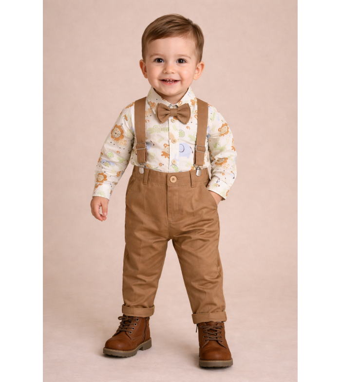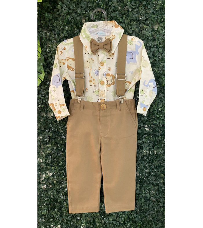1 - Camisa em tricoline 100% algodão Estampa Safári Mangas Longas